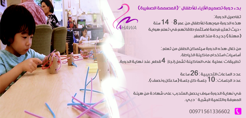 هذه الدورة موجهة للأطفال من عمر 8 - 14 سنة، حيث تعتبر فرصة لاستثمار طاقاتهم في تعلم هواية (مهنة) جديدة منذ الصغر.
